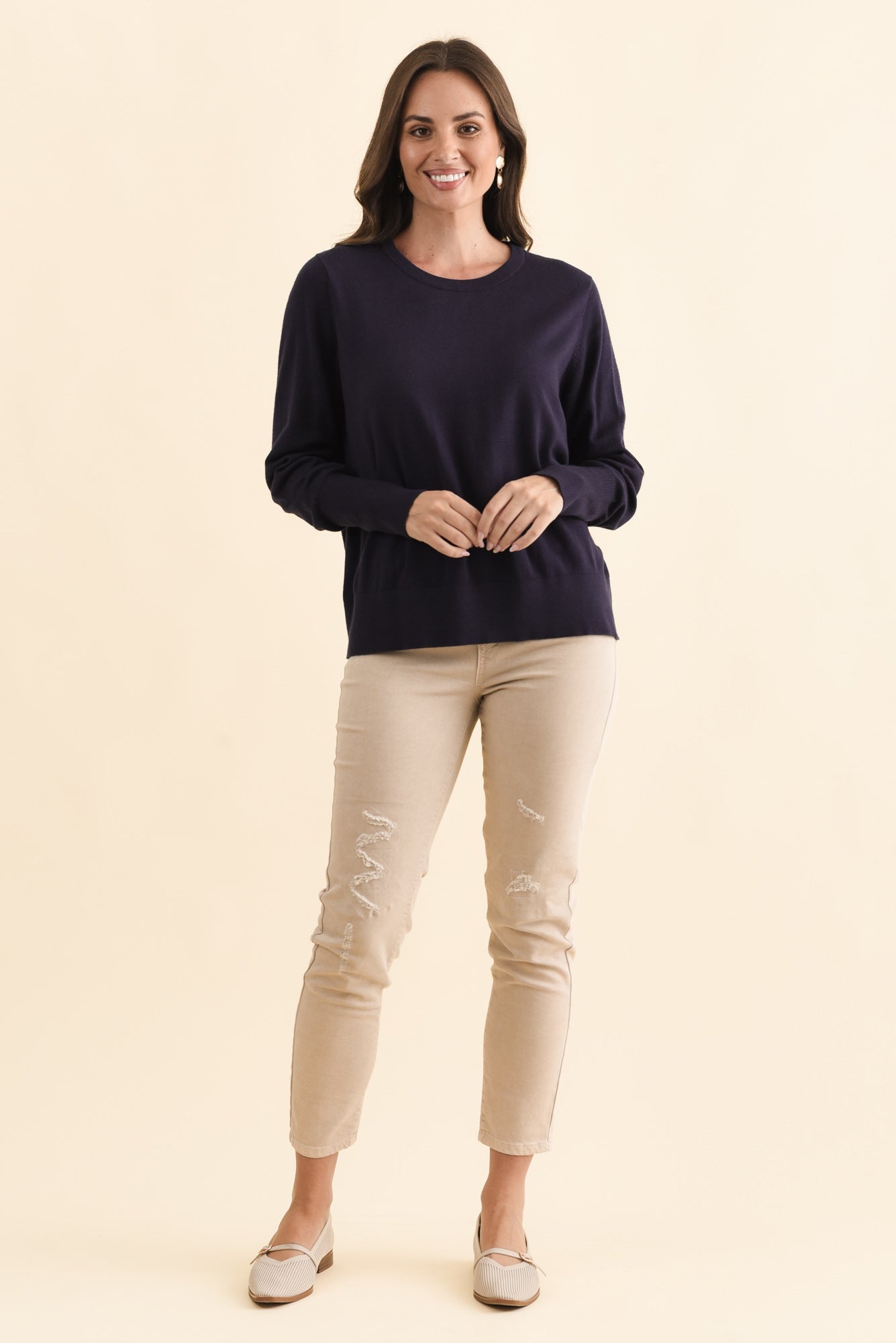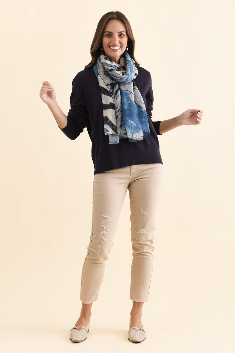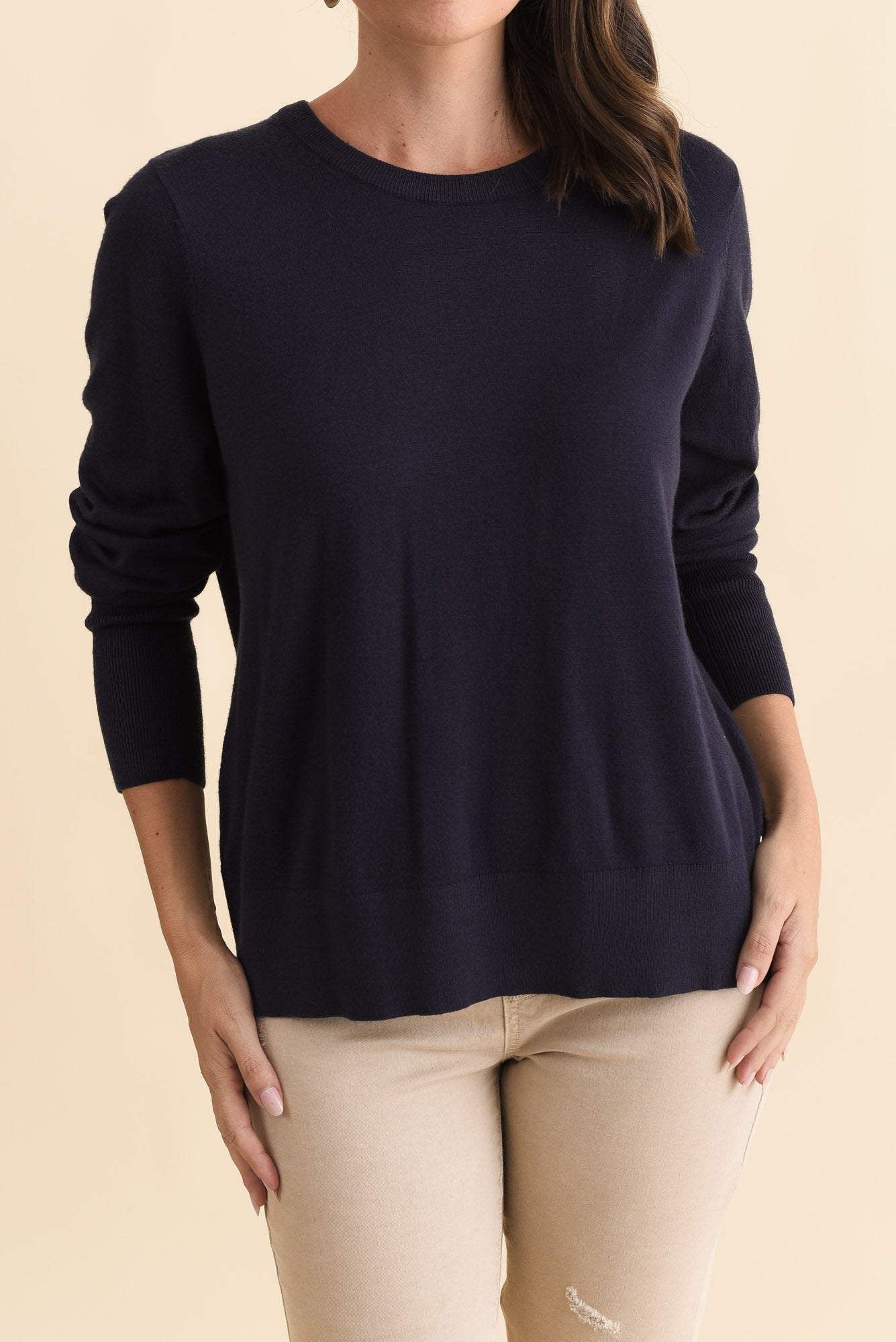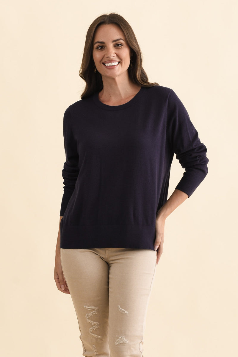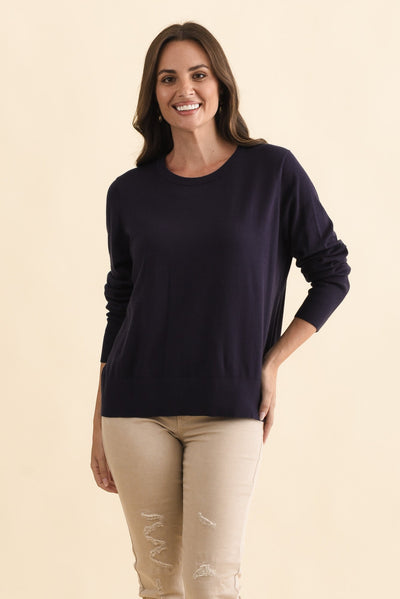 Sunny Navy Long Sleeve Knit Top