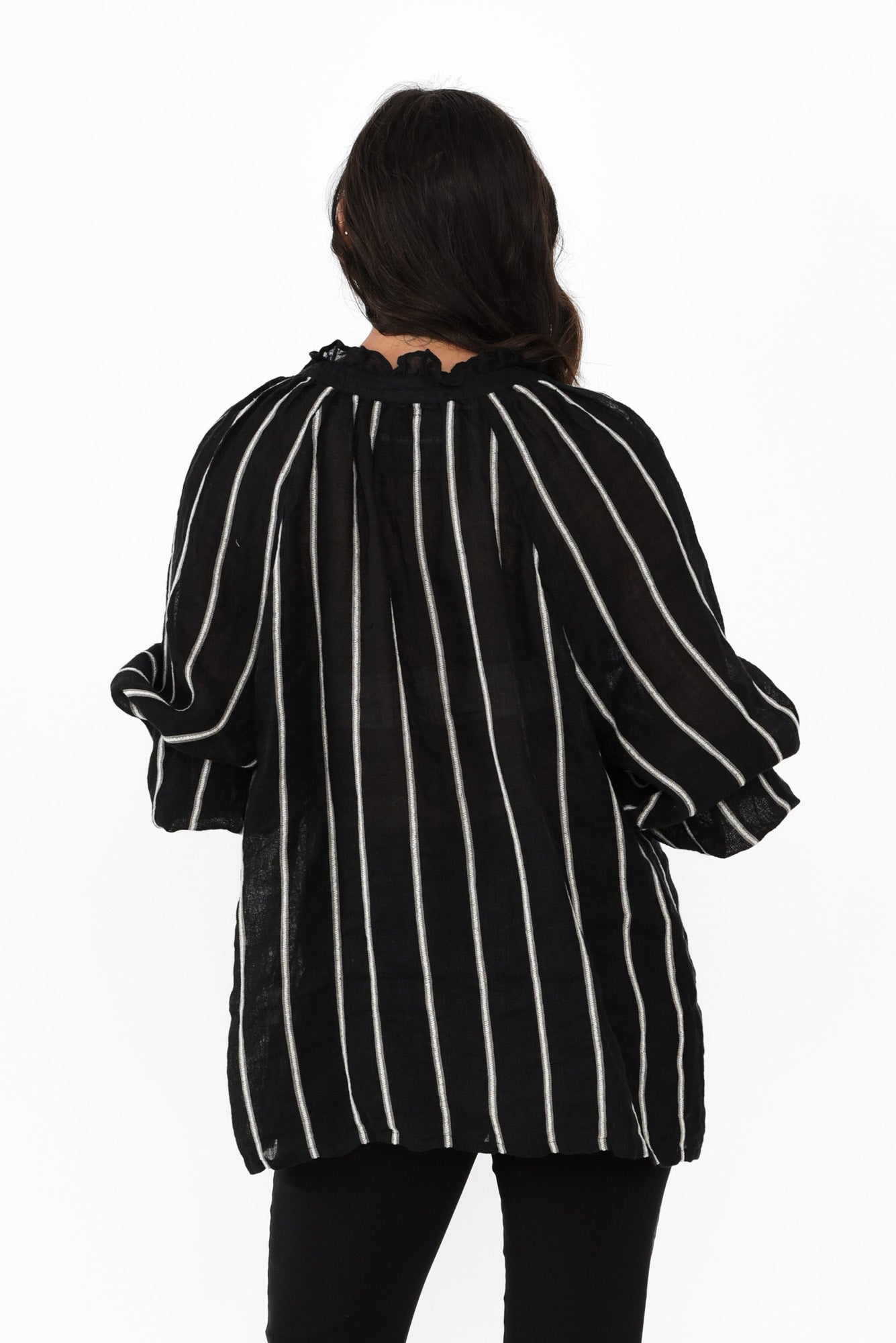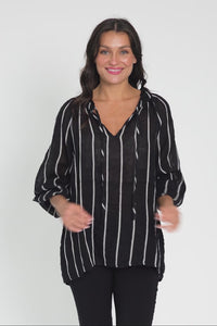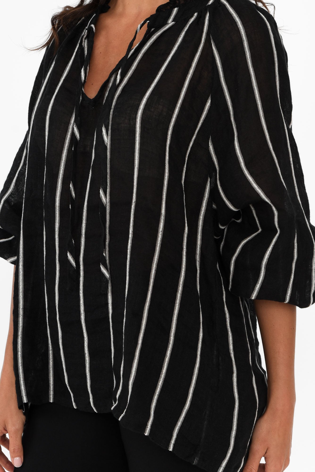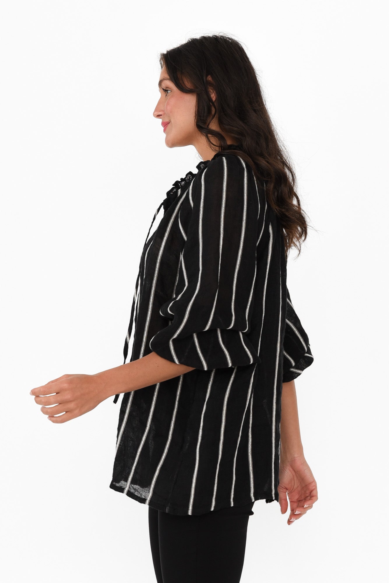 SUSSANA BLACK STRIPE LINEN TIE TOP