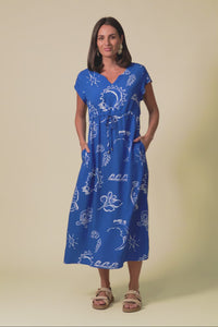 Suzette Blue Abstract Midi Dress