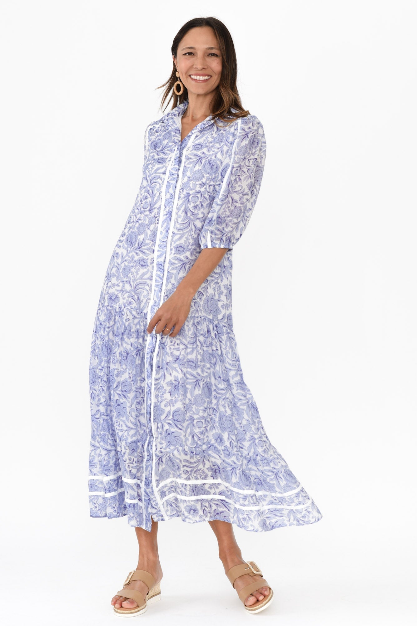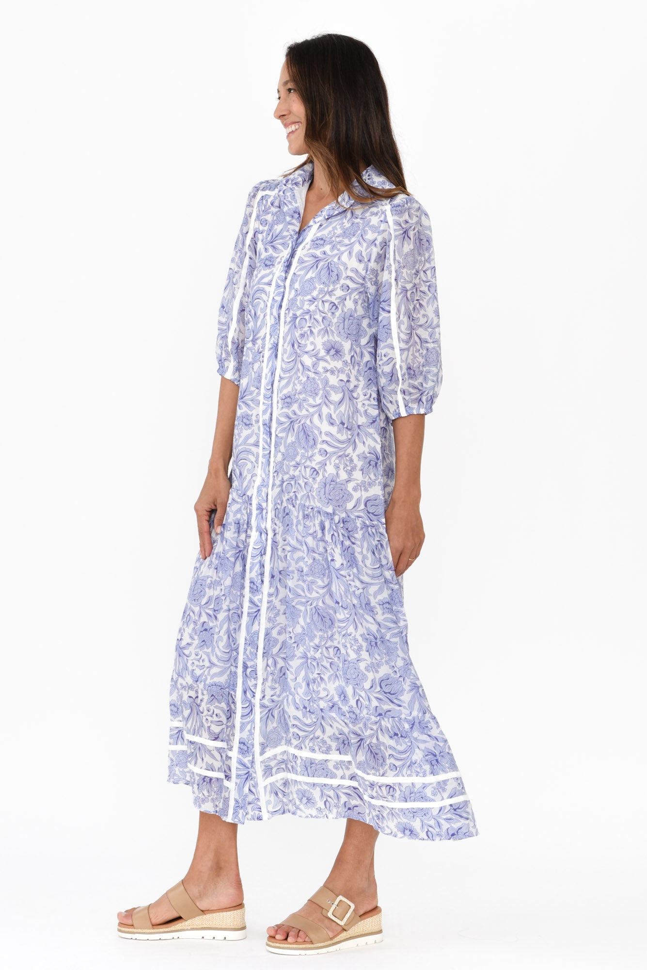 Tanya Blue Floral Cotton Blend Shirt Dress