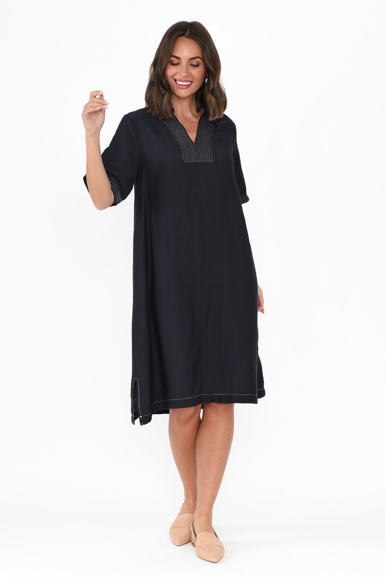 TATIANA NAVY CONTRAST COLLARED DRESS
