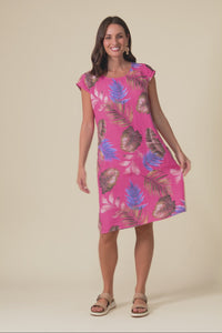Tina Pink Palm Linen Pocket Dress