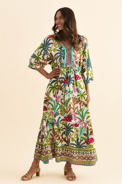 TOVOLA GREEN TROPICAL HALF SLEEVE DRESS