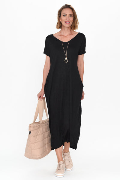 Travel Black Crinkle Cotton Maxi Dress