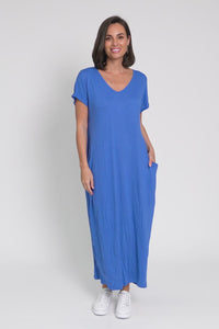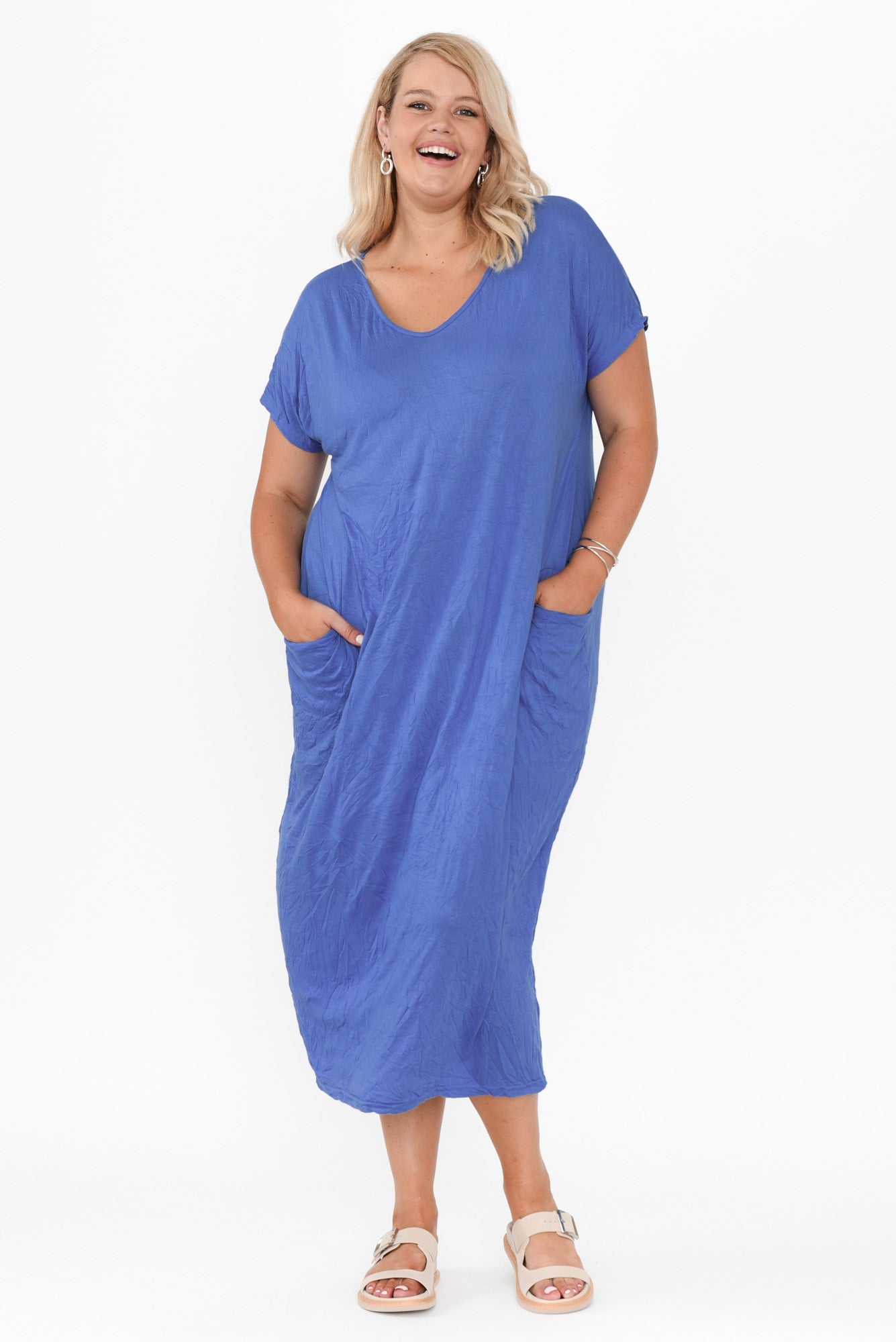 TRAVEL COBALT CRINKLE COTTON MAXI DRESS