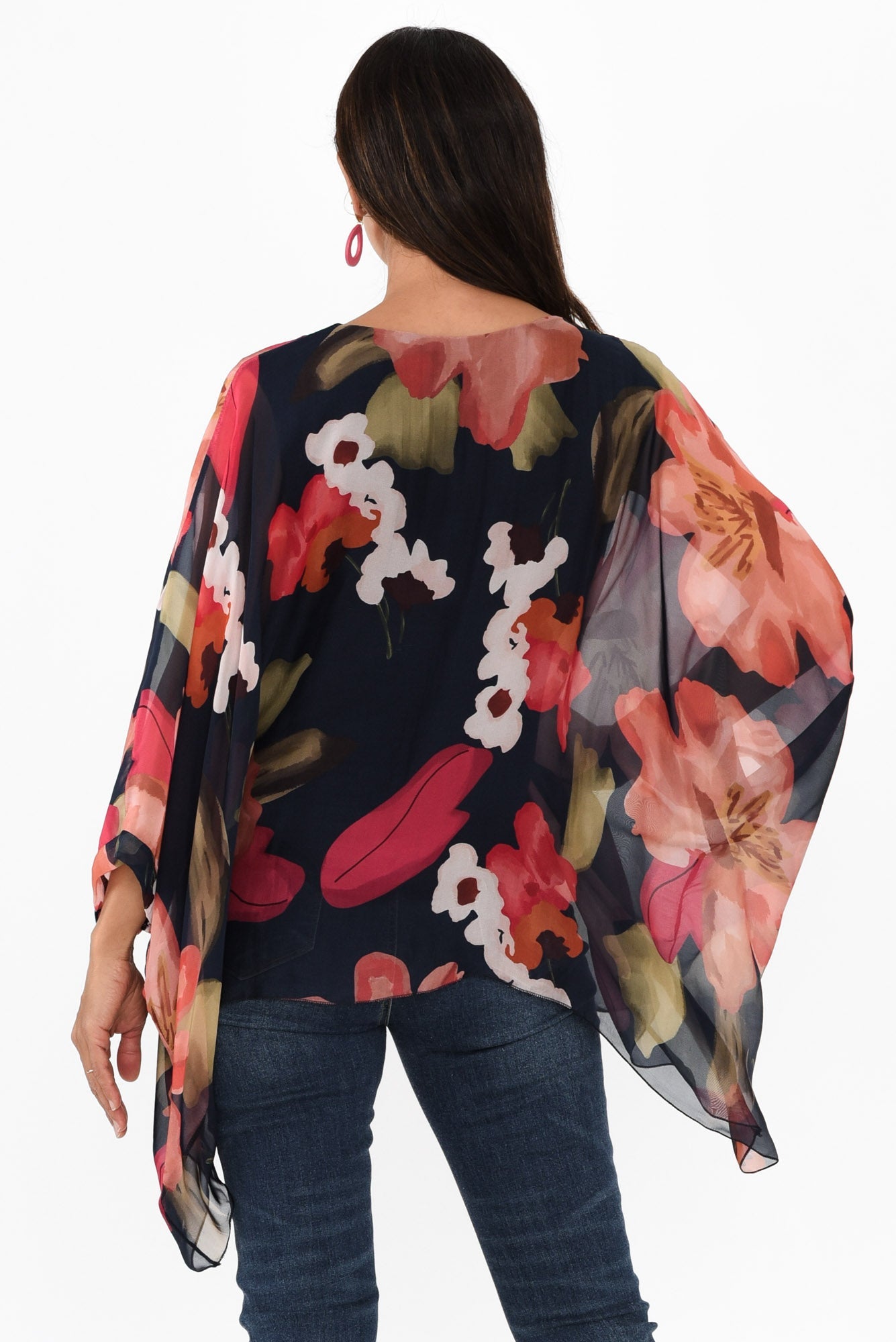 TREVINO NAVY PETAL SILK OVERLAY TOP