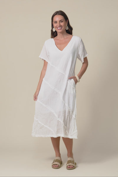 Vanessa White Diagonal Seam Dress