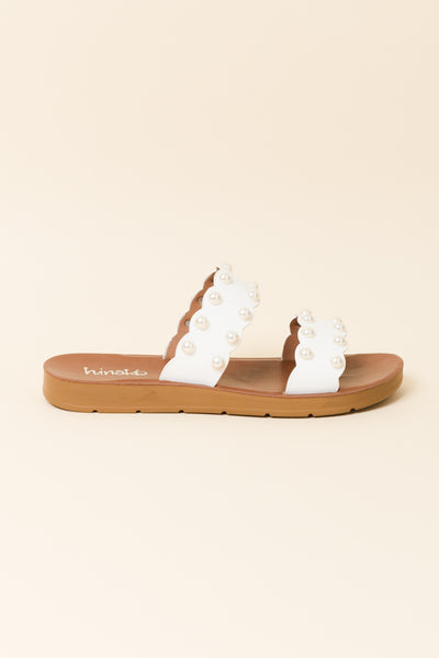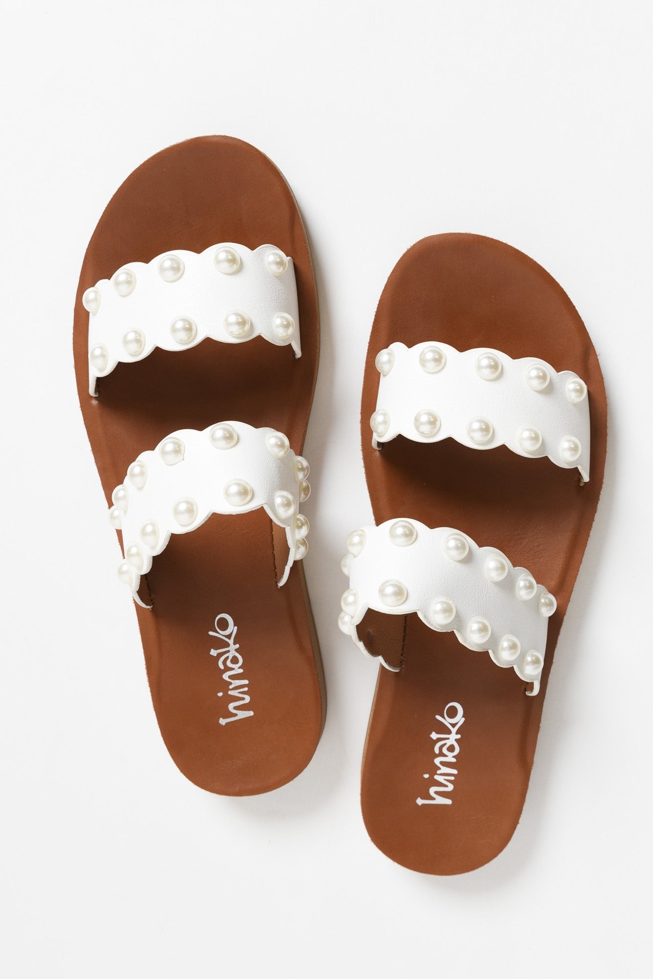 Featuring a minimalist design elevated by glossy, radiant pearls and a two-strap construction