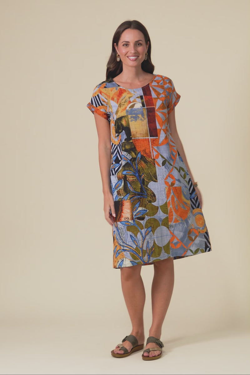 Waverly Orange Geo Cotton Dress
