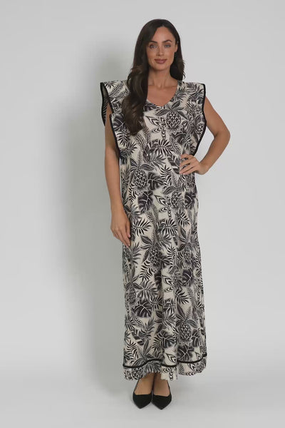 WHITNEY BLACK LEAF LINEN MAXI DRESS