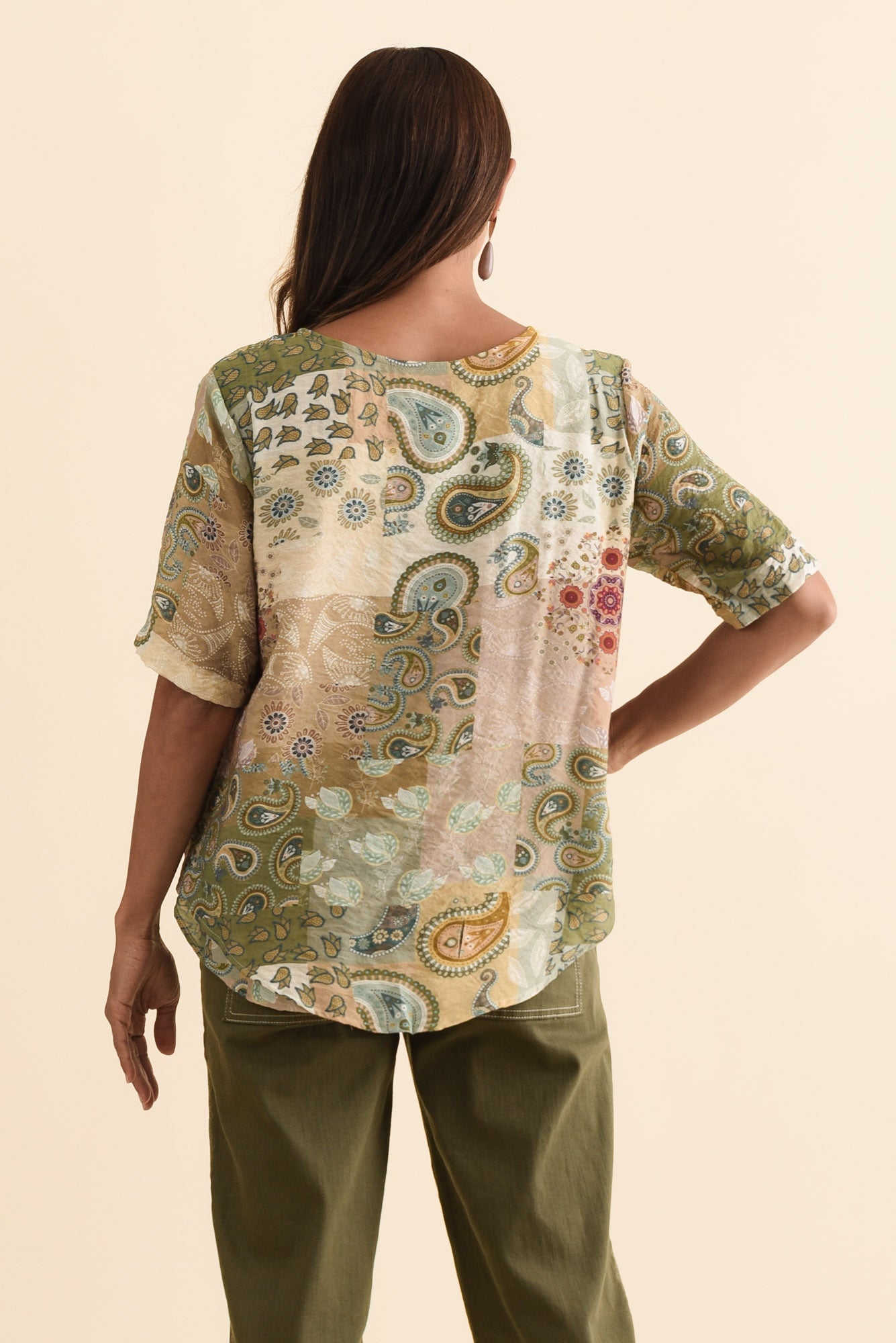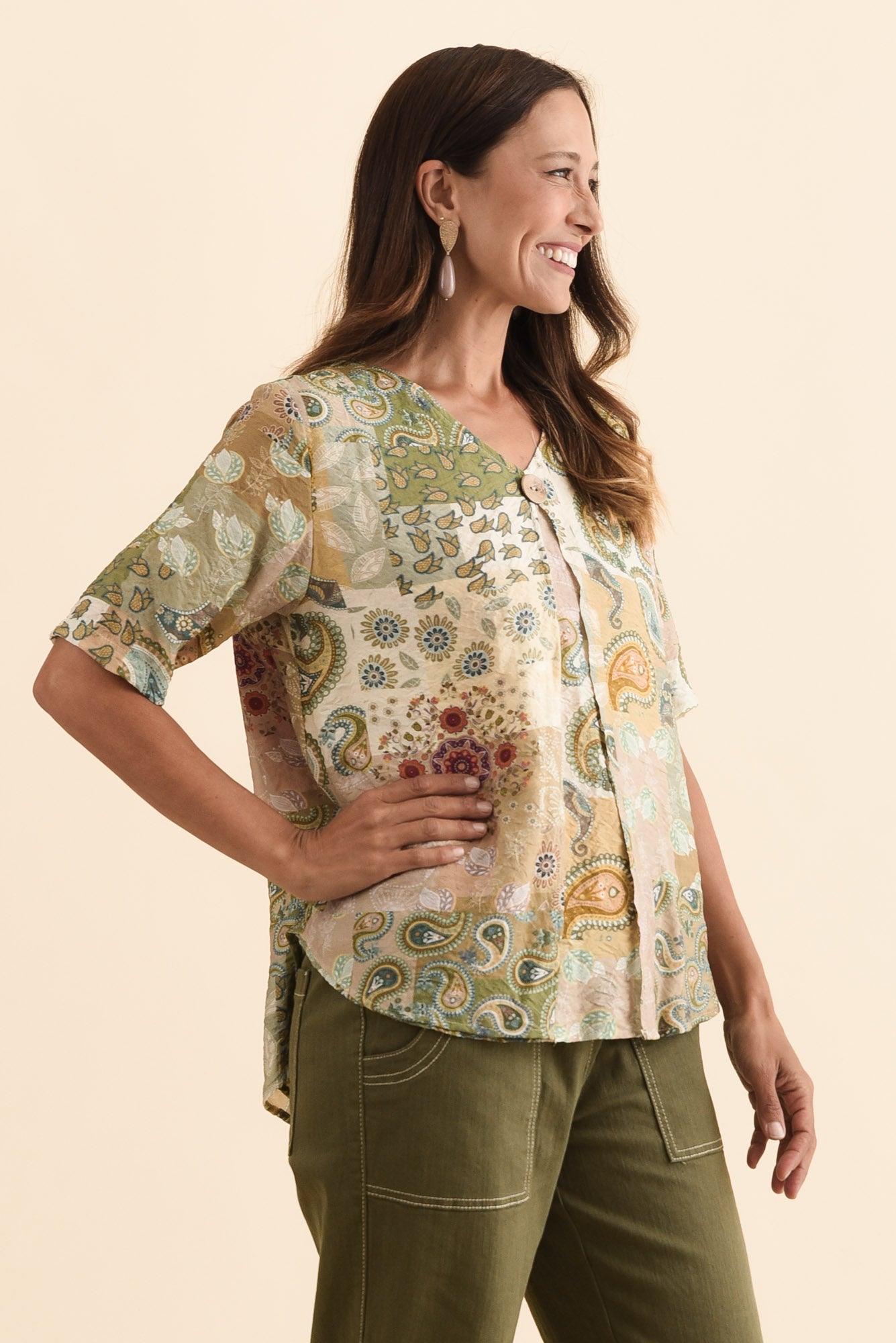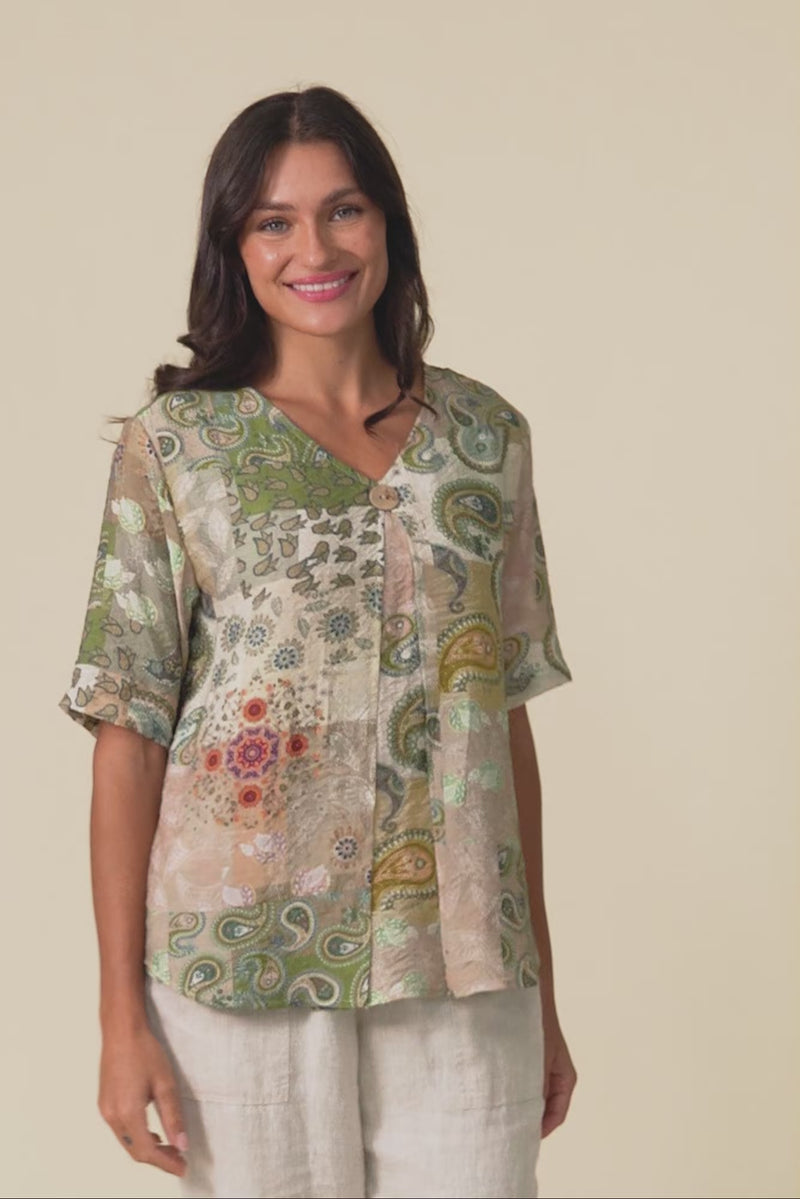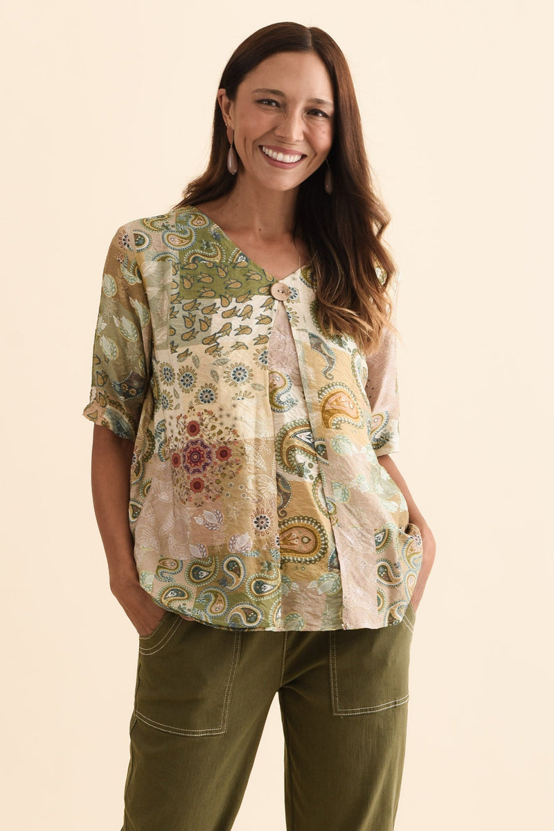 Yasmin Green Paisley Layered Button Top