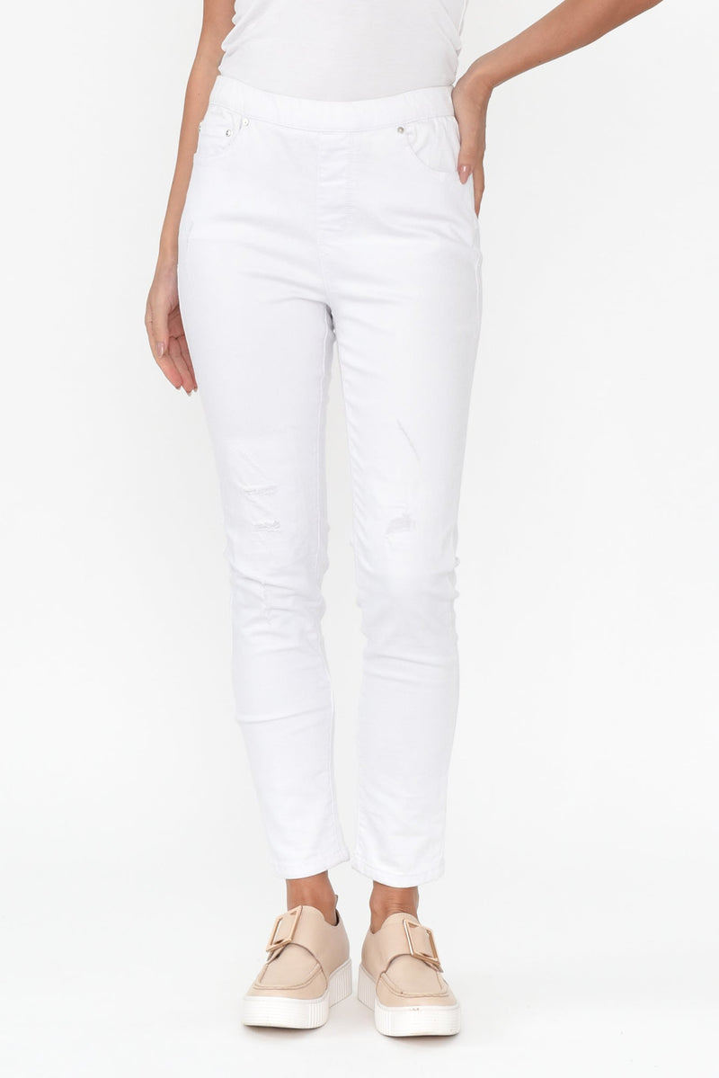 Zadie Distressed White Stretch Jeans